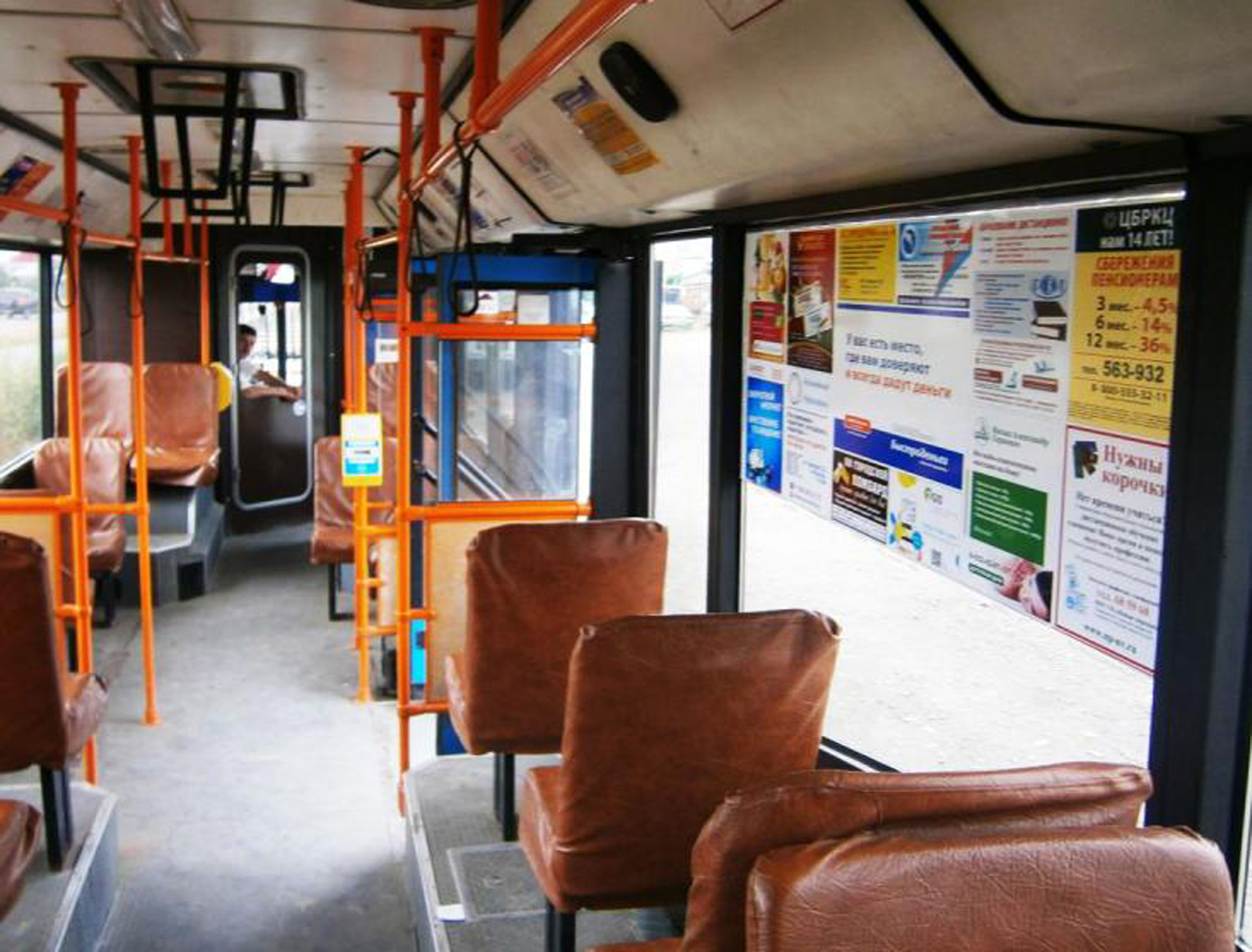 Рекламные стикеры в междугороднем автобусе на фото выше